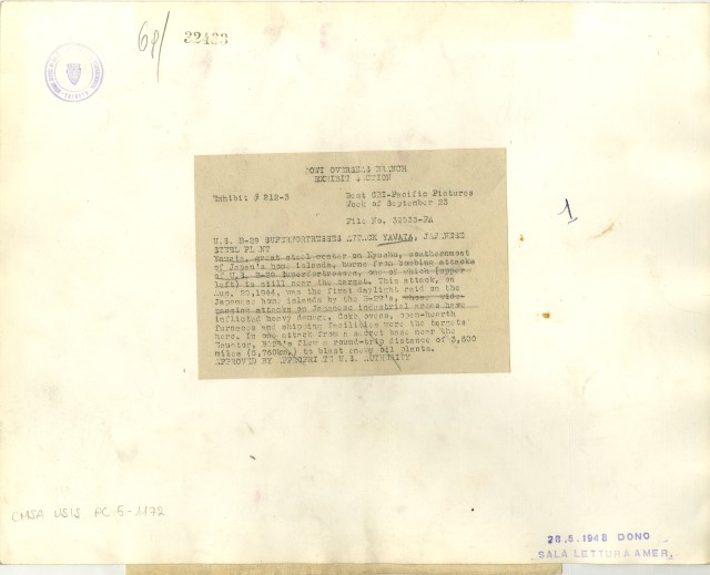 Bombardamento aereo dell'acciaieria giapponese di Yawata del 20 agosto 1944, da parte delle Superfortezze B-29, una delle quali appare nel lato superiore sinistro della fotografia.