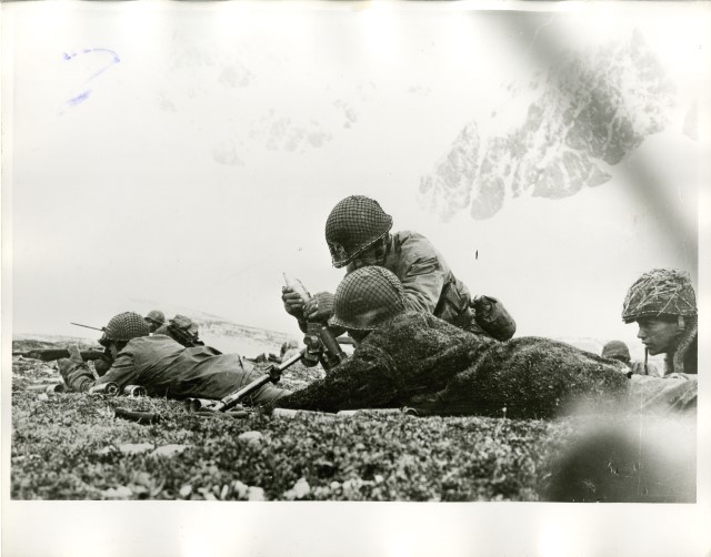 Soldati americani ripresi durante l'attacco sulle isole Attu e Kiska