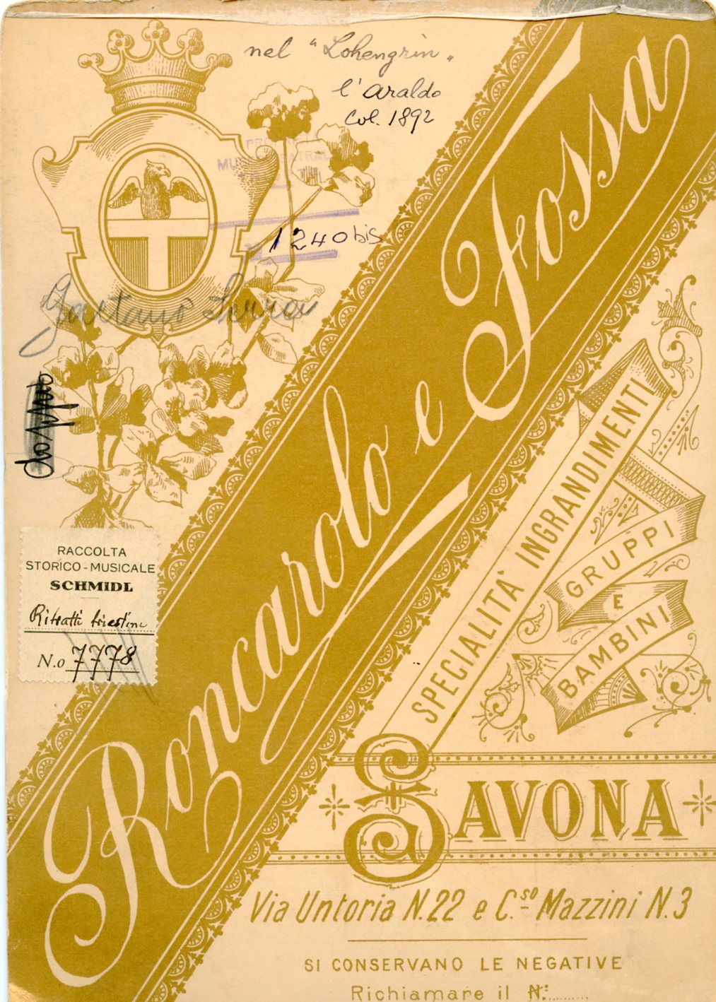 In costume nel ruolo di Araldo nel "Lohengrin". Fratello del baritono Demetrio e Anastasia-Serra Schmidl (moglie di Carlo Schmidl). A Trieste ha interpretato il Conte Robinson nel "Matrimonio segreto" alla Società Filarmonica Drammatica il 22.02.1895