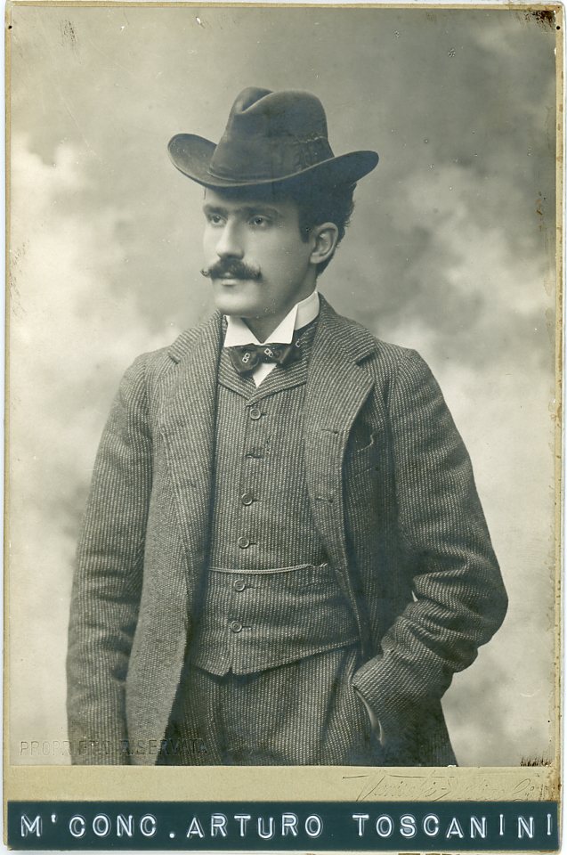 Nato in una famiglia di patrioti e di appassionati di musica lirica. Dopo esperienze anche in piccoli teatri, dal 1895 è chiamato al Regio di Torino, dove dirige la prima della Bohème di Puccini. Nel 26 dicembre 1898 si aprono le porte della Scala con la direzione de "I Maestri Cantori di Norimberga". Nei primi del 900 viene chiamato a New York, dove dirige la prima assoluta della Fanciulla del West di Puccini. Durante la Prima Guerra Mondiale, Toscanini è ostile alla politica tedesca, organizza concerti di beneficenza e, durante l'attacco del Monte Santo, dirige la banda dell'esercito rimanendo al fronte fino alla rotta di Caporetto. Antifascista convinto, a Bologna nel 1931 viene colpito da alcuni facinorosi per essersi rifiutato di dirigere la marcia reale e l'inno fascista. Nel 1936 inaugura in Israele la neonata Orchestra di Palestina. Nel 1937 a New York la RCA crea per il Maestro un'orchestra destinata a trasmissioni radiofoniche con la quale le sue interpretazioni attraversano il mondo. Dopo la guerra, nel 1946, Toscanini rientra in Italia per dirigere il concerto inaugurale della Scala ricostruita dopo i bombardamenti.(Comune di Parma, Museo Casa natale - Arturo Toscanini)