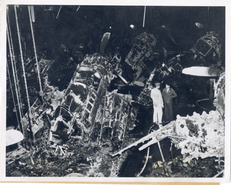 This is the Saratoga's hangar deck after the fires were finally conquered
