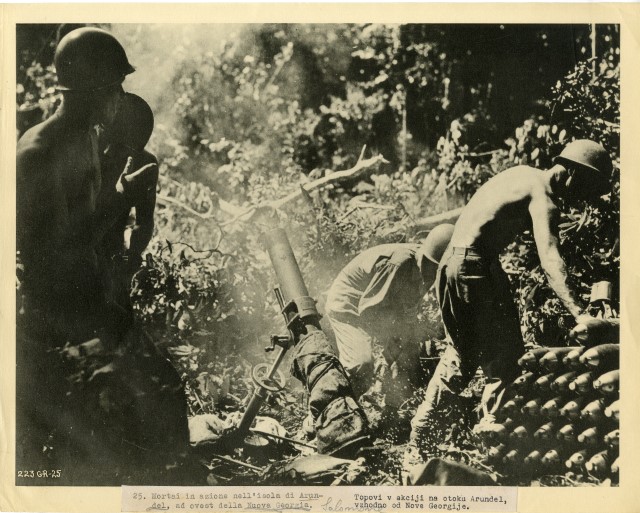 Mortai in azione nell'isola di Arundel ad ovest della Nuova Georgia