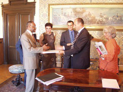 il vicesindaco Renzo Codarin assieme a Mourad Ahmia segretario del Gruppo 77 delle Nazioni Unite