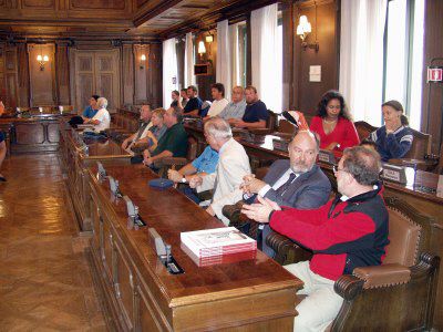 L'assessore Renzo Codarin ed il consigliere Piero Camber con i ragazzi dell'iniziativa Gioventù in Movimento assieme al presidente del Club Alpino Italiano Gabriele Bianchi e al presidente del Club de l'Arc Alpin Roberto de Martin ed ai rappresentanti dell'Unione Internazionale delle Associazioni Alpinistiche in occasione della manifestazione conclusiva legata all'anno internazionale della montagna.