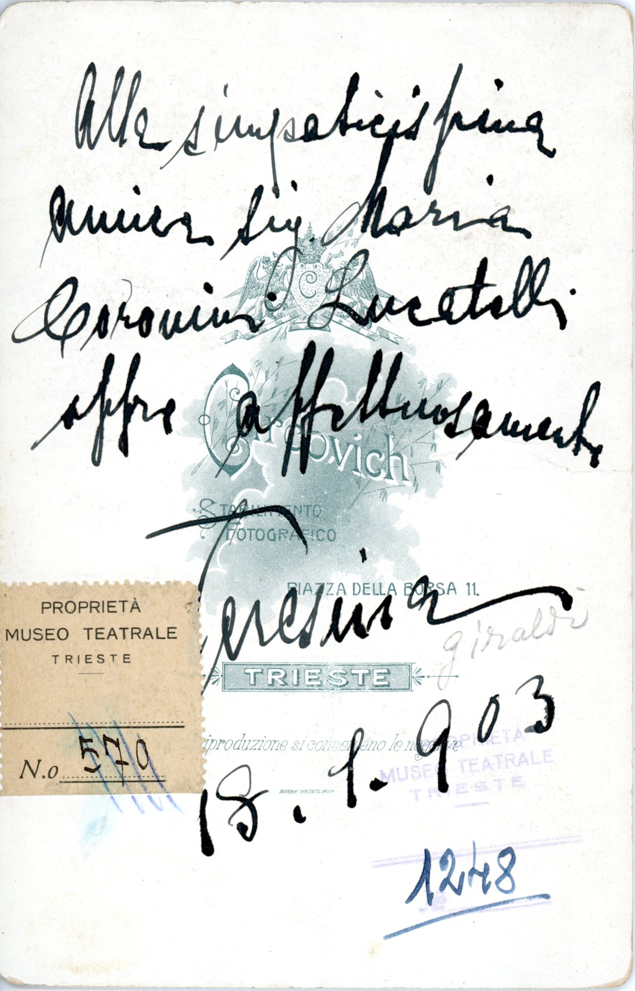 Allieva del M.° Alberto Castelli fu poi concertista e insegnante al Conservatorio Tartini di Trieste.