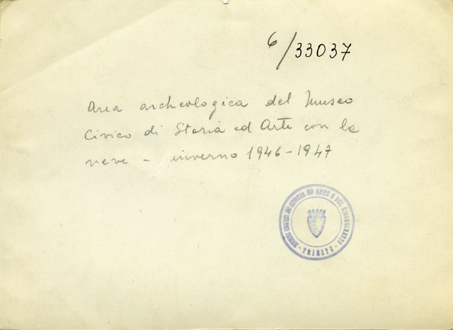Veduta dell'area archeologica antistante al Museo civico di Storia e Arte di Trieste innevata. La fotografia è stata scattata durante l'inverno a cavallo tra il 1946 e il 1947.