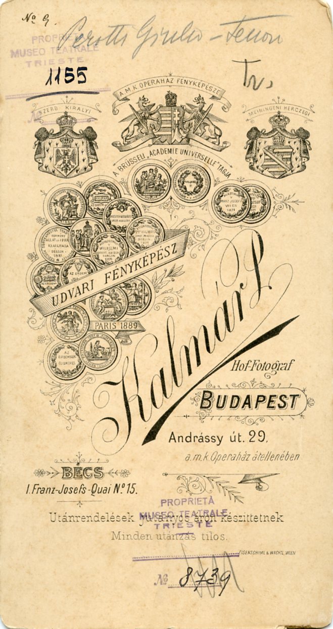 In costume. Alias Julius Prott, tenore, si è esibito in molte città d'Europa e d'America. Nel 1874 ha cantato al teatro Mauroner di Trieste nel "Trovatore". Appassionato di giardinaggio, alla fine della sua carriera si è stabilito a Trieste dove ha aperto un'azienda per la coltura delle rose riconosciuta a livello internazionale; si può anche ricordare lo storico negozio di fiori in Capo di Piazza.