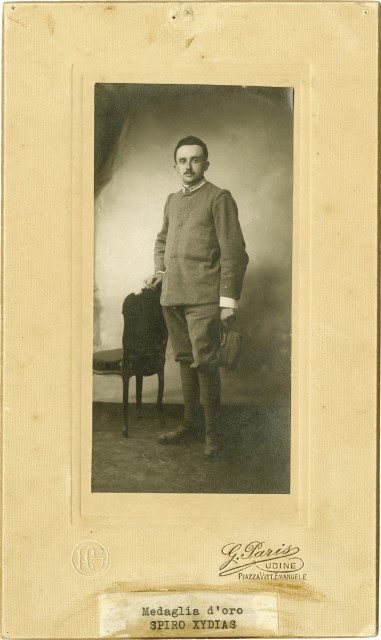 Spiro Tibaldo Xydias, nato a Trieste nel 1887, laureato in giurisprudenza, fu uno degli animatori del movimento irredentista a Trieste e dell'azione nazionalista. Allo scoppio del conflitto passò il confine con Ruggero Timeus e si trasferì a Roma ove, il 24 maggio 1915, si arruolò nell'81° Rgt. fanteria. Si distinse in vari combattimenti e cadde il 14 agosto 1916 sul Nad Logem, al comando di una sezione mitragliatrici.