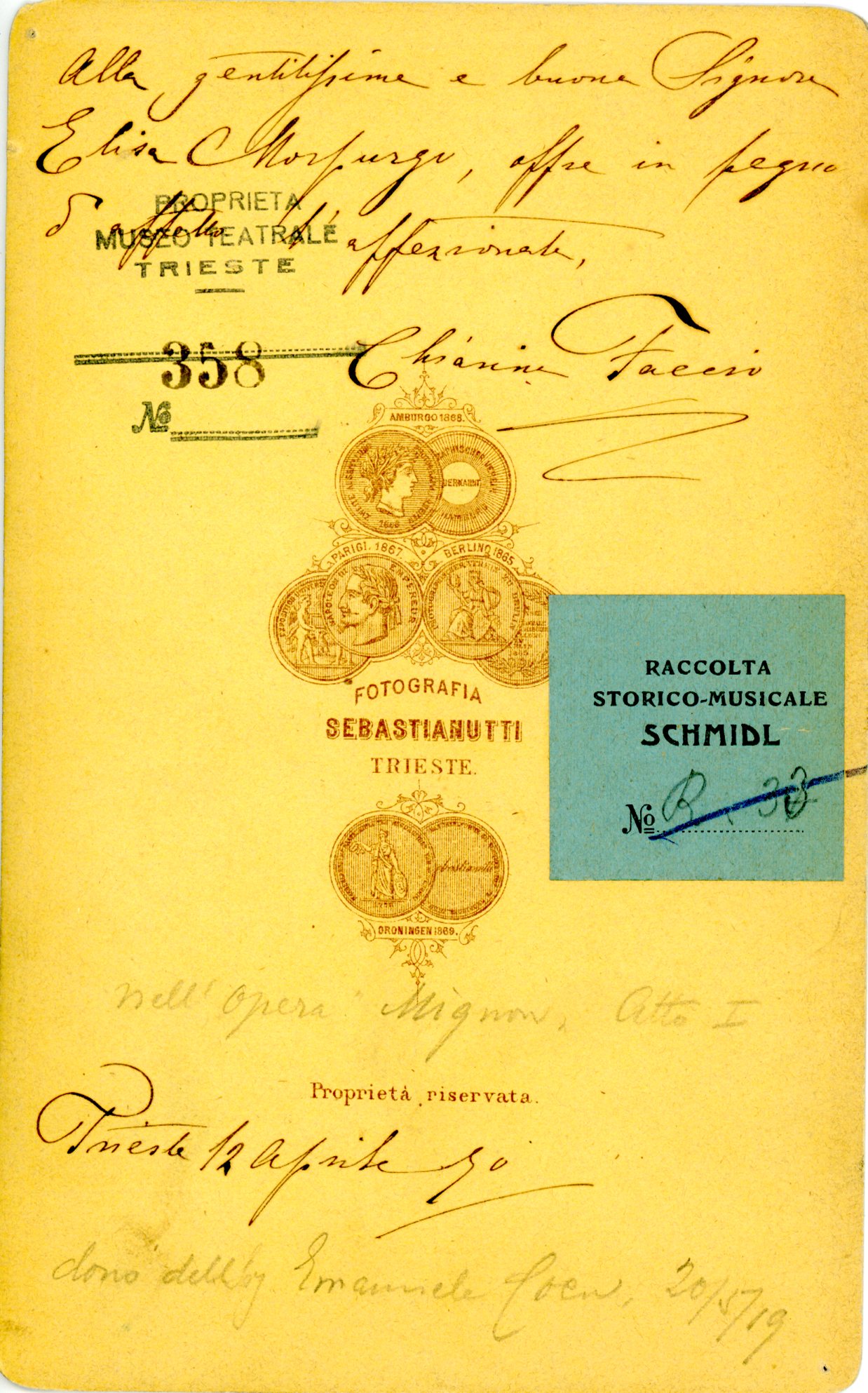 Sorella del direttore Franco Faccio, in questa foto la cantante indossa il costume dell'opera Mignon atto 1.