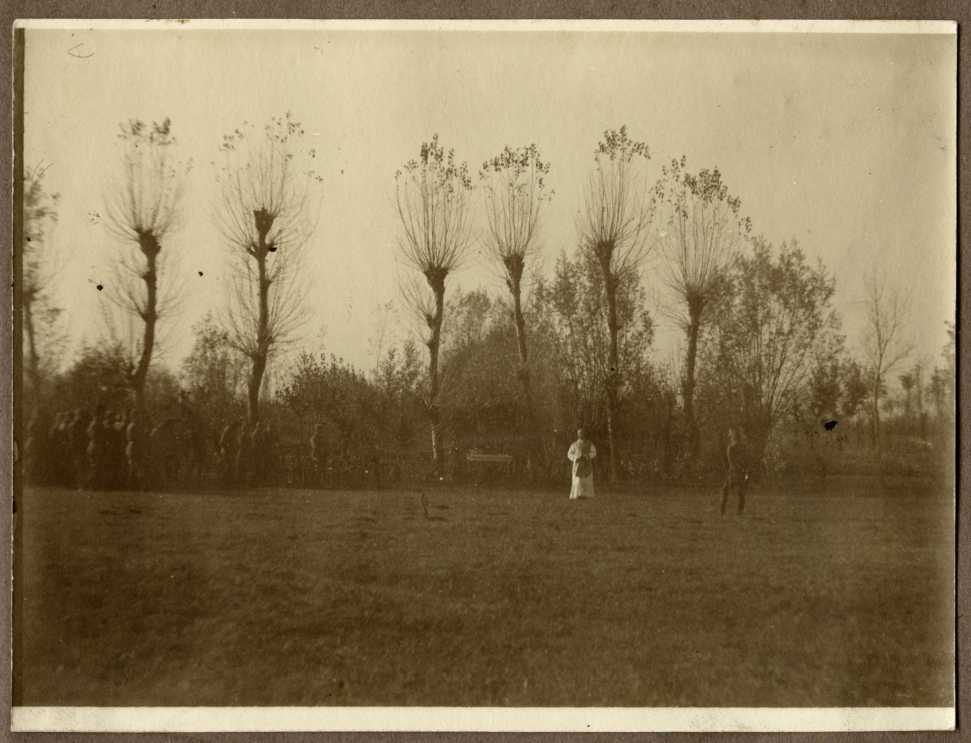 Funzione religiosa Ponte su un fiume Aia in primo piano un pozzo sullo sfondo un casale