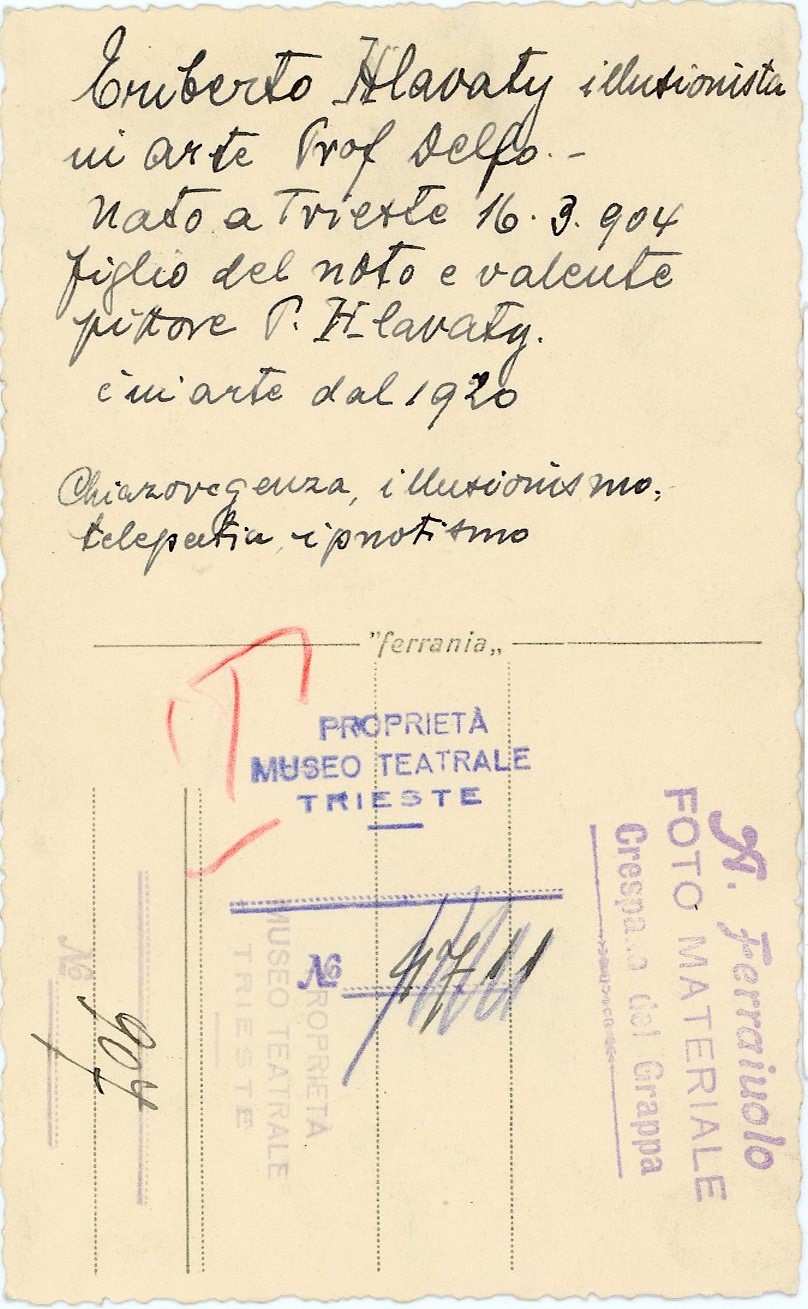 Illusionista attivo dal 1920, in arte Prof. Delfo, figlio del pittore P. Hlavaty