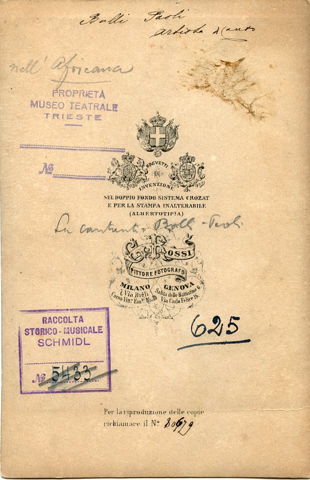 In costume nel ruolo di Selika in "L'africana", nel 1875 al Teatro Dal Verme a Milano