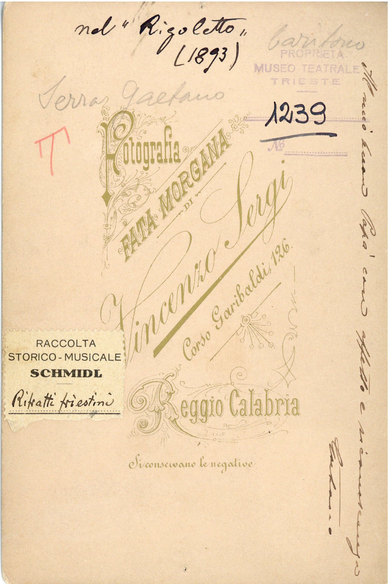 In costume nel "Rigoletto". Fratello del baritono Demetrio e Anastasia-Serra Schmidl (moglie di Carlo Schmidl)