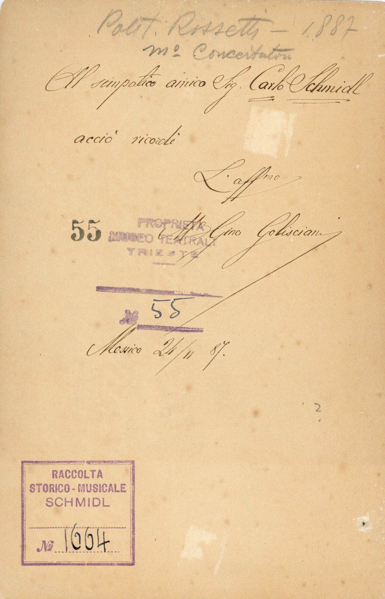 Proprietà Ente pubblico territoriale; Civico museo teatrale C. Schmidl
