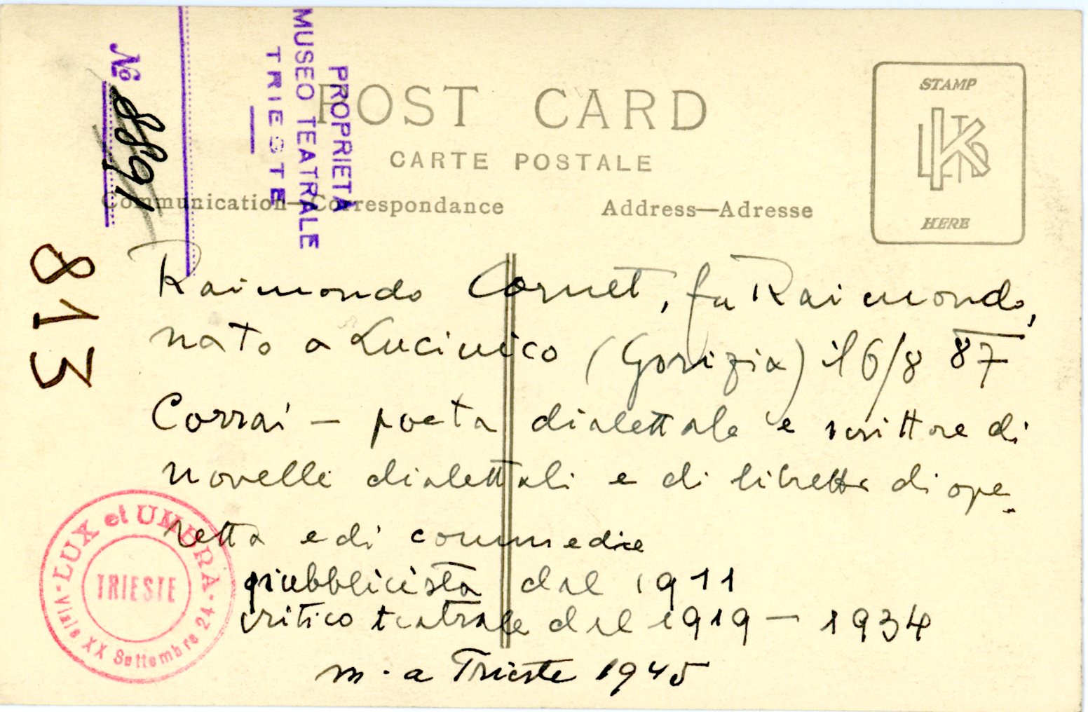 Scrittore e poeta dialettare, autore di "Trieste mia" e "Marinaresca"