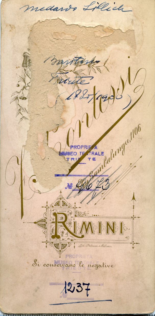 In costume nel ruolo di Alfonso in "La favorita". Cantò al Politeama Rossetti di Trieste in concerto di beneficenza il 12.12.1888 , e il 15.11.1901 in concerto con la violinista Teresina Tua. 1889 a Parma nella "Carmen" e alla Scala di Milano in "Simon Boccanegra"; nel 1893 al Teatro Grande di Brescia in "Otello" nel 1895 in "Ruy Blas" e "Ernani" al Teatro Cressoni di Como