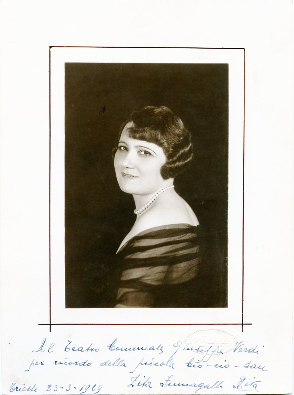 Canto a Trieste al Politeama Rossetti nel 1924 in " Mefistofele" e al Teatro Comunale in "Madama Butterfly" nel 1929