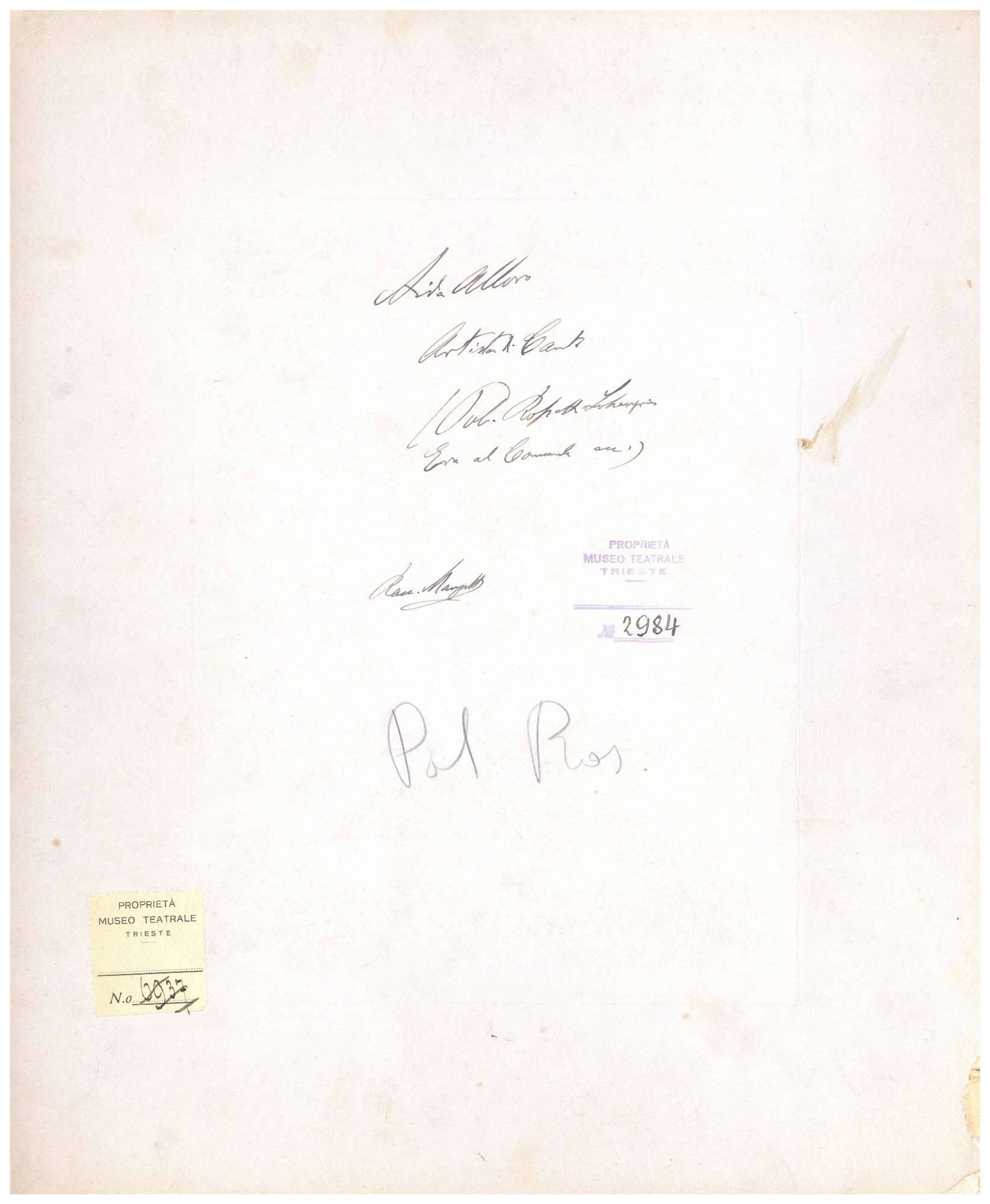 Proprietà Ente pubblico territoriale; Civico museo teatrale C. Schmidl