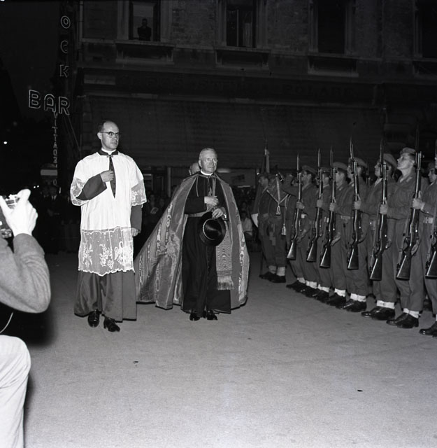 Il cardinale Amleto Cicognani arriva a Trieste per partecipare al terzo convegno nazionale di studi europei che ha riunito eminenti studiosi cattolici e personalità politiche. Tratto da il Piccolo Sera dell'11 maggio 1959.