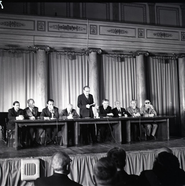 Giuseppe Ungaretti partecipa insieme al gruppo dell'Approdo al tributo in omaggio alla letteratura triestina. Presenziano anche: Carlo Bettocchi, F. Accrocca, G. B. Angioletti, Nicola Lisi, Pietro Bigonciari, Gianfranco Contini, Gino Doria e Leone Piccioni.