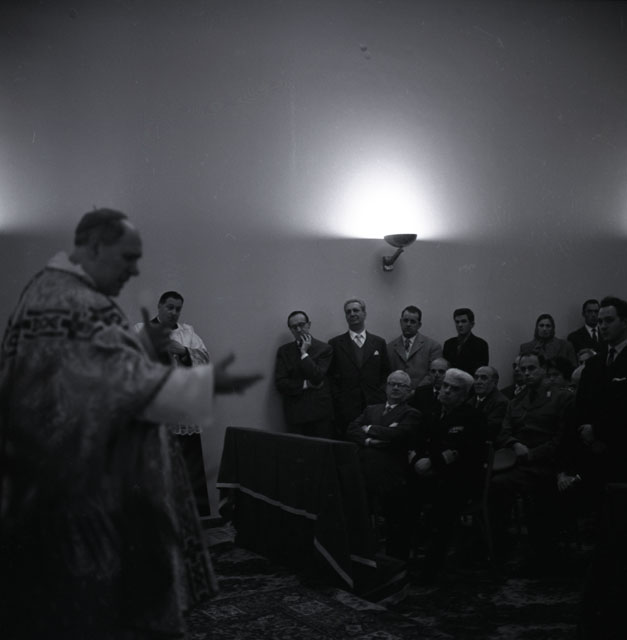 La Cappella, creata utilizzando una parte del capannone 55 del Porto Duca d'Aosta e dedicata a Sant'Andrea è stata inaugurata e benedetta oggi da Mons. Santin. Da Il Piccolo 24.10.1959