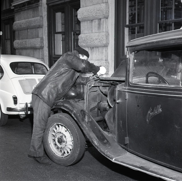 FREDDO : cani vestiti ; bambini imbacuccati ; auto balilla - antigelo ; semafori gente in attesa
