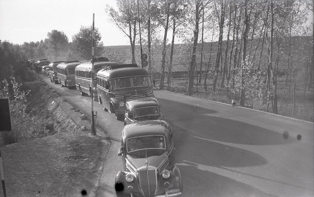 Corteo di macchine e pullman che da Trieste raggiungono Redipuglia, per le celebrazioni della vittoria della 1. guerra mondiale