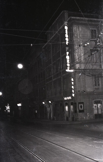 Insegna luminosa della agenzia d' auto Kaiser Frazer Agency in via Ghiberti 3