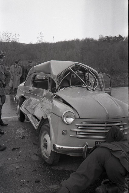 Bivio di Aurisina : Incidente mortale tra Fiat 1100 TS e autobotte AN