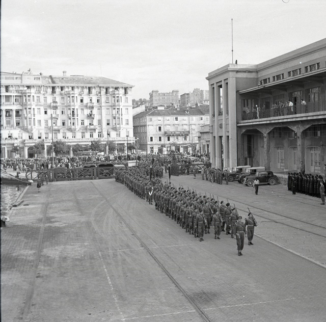 Il 22 ottobre 1951 il primo battaglione del Reggimento britannico South Lancashire, che per quattro anni ha prestato servizio lungo la linea di demarcazione tra le due zone del Territorio Libero, si imbarca sul piroscafo Empire Test, attraccato alla Stazione Marittima. Il battaglione e' diretto a Karthum, nel Sudan anglo-egiziano. Le truppe, partendo dalle caserme di via Rossetti bagagli in spalla, lasciano Trieste sfilando per le vie del centro, accompagnate dalle bande del TRUST, del reggimento North Staffordshire e del reggimento Northamptonshire