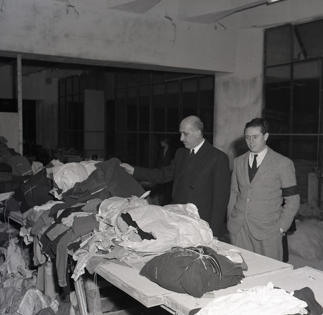 Visita del sindaco Bartoli ai magazzini della Fiera di Trieste, centro di raccolta dei materiali offerti a favore degli alluvionati