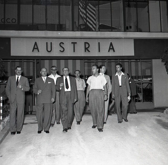 Delegazione in visita agli stand e davanti al padiglione austriaco