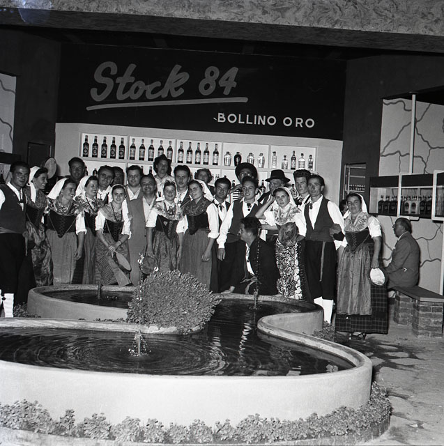 Spettacolo di un gruppo folkloristico, con sosta davanti al chiosco della Stock e foto di gruppo davanti allo stand delle Cantine Barone Leo Economo
