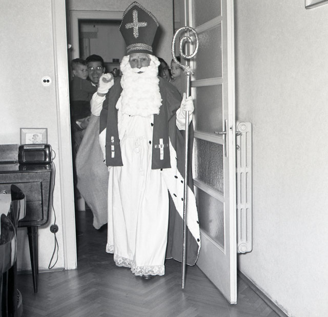 San Nicolò consegna i doni a due bambini presso la loro abitazione