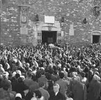 Servizio fotografico che documenta gli avvenimenti, anche drammatici, che precedettero il ritorno di Trieste all'Italia nell'ottobre del 1954. L'agenzia Giornalfoto accorpò a posteriori, in un unico ampio reportage, la documentazione fotografica prodotta a partire dai fatti di sangue dei primi di novembre 1953 fino alla partenza degli alleati. I funerali delle vittime del 5 e 6 novembre 1953: Pietro Addobbati, Antonio Zavadil, Saverio Montano, Erminio Bassa, Francesco Paglia e Leonardo Manzi. Corteo funebre per le vie del centro e solenne cerimonia nella cattedrale di San Giusto.
