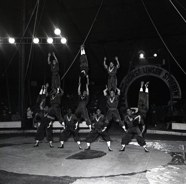 Il circo Krone, fondato da Carl Krone nel 1905 in Germania, a Monaco di Baviera, era ed è uno dei piu grandi del mondo e il più grande d'Europa. Dal 1 al 17 maggio 1954 era presente a Trieste, in via San Marco, con uno chapiteau o tendaggio che copriva un vano dalla capienza di 6000 posti e uno zoo di 412 animali di tutte le specie. Tra i numerosi programmi offerti: i 12 Mohameds, troupe di acrobati arabi che forma delle piramidi umane; Enrico Caroli e i suoi fratelli, audacissimi cavallerizzi; la famiglia Raspini sulle scale mobili; la trapezista Rose Gold sospesa al trapezio coi talloni nudi e senza rete di protezione; il domatore Schaefer con orsi bianchi che vuotano bottiglie e orsi bruni che vanno in bicicletta; Frieda Sembach-Krone provetta amazzone coi suoi 12 elefanti. (da: "Il Corriere di Trieste", 28 aprile e 4 maggio 1954)