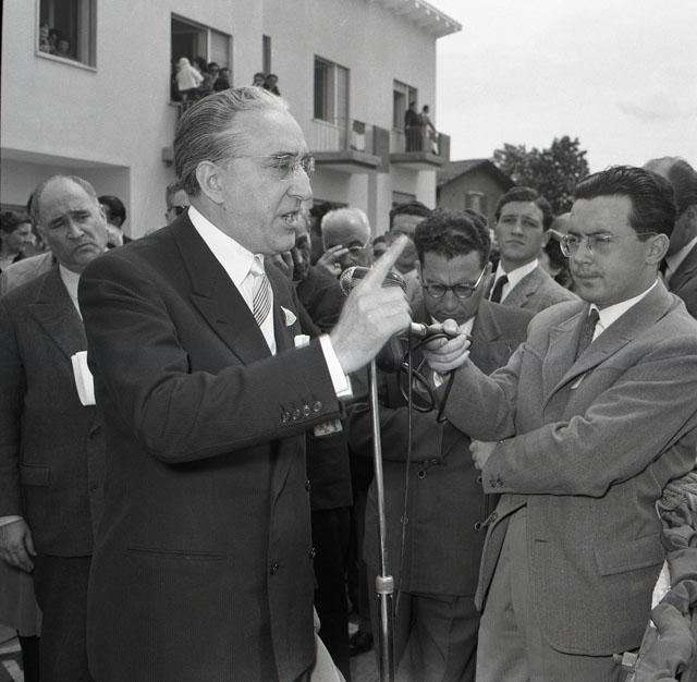 In località Chiarbola superiore, alla presenza del vescovo mons. Santin, di tutte le autorità locali e del sottosegretario alla presidenza del Consiglio on. Scalfaro, ha avuto luogo l'inaugurazione del Villaggio giuliano e dalmata realizzato dall'Opera per l'assistenza ai profughi giuliani e dalmati (da: Il Corriere dei Trieste, 9 maggio 1954). Nell'occasione viene scoperta una targa in memoria di Oscar Sinigaglia, morto l'anno precedente, già fondatore e presidente dell'Opera profughi. L'inaugurazione fa seguito ad un'altra cerimonia svoltasi in onore di Teodoro Mayer, con lo scoprimento di una lapide nello stabile di via San Francesco 4 (da: Trieste 1900-1999. Cent'anni di storia, v. 6, p. 284).