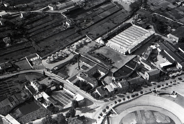Immagini aeree della "Prima Raffineria Triestina di Grassi" della famiglia Pontini, poi I.R.C.O., (raffineria olii minerali), quindi VINCOR, piccola raffineria che riciclava olio usato