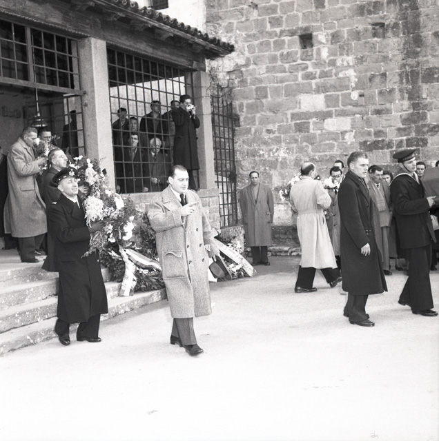 Cerimonia funebre per le salme dei cinque marinai della nave da guerra Berenice affondata il 9 settembre 1943 dalle truppe tedesche nel golfo di Trieste, e recuperate nei mesi di gennaio e febbraio del 1951