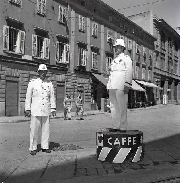 La pedana dei vigili pubblicizza il caffè Hausbrandt