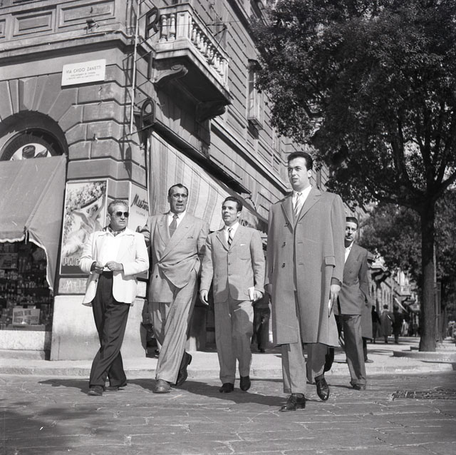 Nato a Sequals, il paesino a quaranta chilometri da Udine, il 25 ottobre del 1906, Primo Carnera, il "gigante dai piedi d'argilla", come venne battezzato a causa della sua triste parabola discendente, Carnera è un personaggio estremamente importante nella storia dello sport nostrano. E' stato infatti il primo pugile italiano a conquistare il titolo mondiale dei massimi. Le tappe della sua faticosa carriera si aprono con il dramma di Ernie Schaaf, morto dopo il match il 10 febbraio del 1933; seguono la sfida con Uzcudum a Roma (1933) nel momento di massimo trionfo del fascismo, per concludersi con l'exploit della sua vita, il successo per K.O. a New York su Jack Sharkey in sei riprese. Era il 26 giugno 1933 e Carnera diventava campione del mondo dei pesi massimi di pugilato; ed era dal 1914 che un incontro valido per il mondiale dei massimi non si disputava in Europa. La propaganda mussoliniana lo trasformò in un grande evento di regime, con il Duce in tribuna e Piazza di Siena, il salotto dell'equitazione, trasformata in una grande arena, gremita da settantamila persone molte delle quali affluite fin dal mattino. All'apice della sua carriera, Carnera, "l'uomo più forte del mondo", presta il volto anche a diverse pubblicità: il Punt e mes, gli elettrodomestici Zanussi, la Necchi. Nonostante la fama, tuttavia, non perde mai la sua disarmante spontaneità. Si profila all'orizzonte il triste declino. Perde in maniera rovinosa contro Max Baer, nonostante nel 1937 una sconfitta per KO a Budapest contro il rumeno Joseph Zupan venne trasformata dai giornali italiani in brillante vittoria. Carnera era un mito che non si poteva intaccare, un eroe da lustrare a maggiore gloria dell'Italia. Nella sua storia il gigante buono è stato infatti anche eroe dei fumetti e interprete di una ventina di pellicole cinematografiche tra cui "L'idolo delle donne" (1933) con Myrna Loy, Jack Dempsey e lo stesso Max Baer e "La corona di ferro" (1941), con Gino Cervi, Massimo Girotti, Luisa Ferida, Osvaldo Valenti e Paolo Stoppa. Nel 1956, il film "Il colosso d'argilla" con Humphrey Bogart, liberamente ispirato alla carriera del Carnera pugile, gettò pesanti ombre di discredito sui suoi incontri, ipotizzando ogni genere di combine dietro le quinte dei suoi match. Un'accusa che Primo Carnera ha sempre respinto fino al giorno della sua morte, avvenuta a Sequals, in Friuli, il 29 giugno del 1967. Il pugile viene immortalato a Trieste con la moglie Pina e l'amico Duilio De Franceschi, commerciante triestino trasferitosi a Johannesburg. Carnera si reca alla filiale della Fiat di Via Marconi intenzionato ad acquistare una 1400.