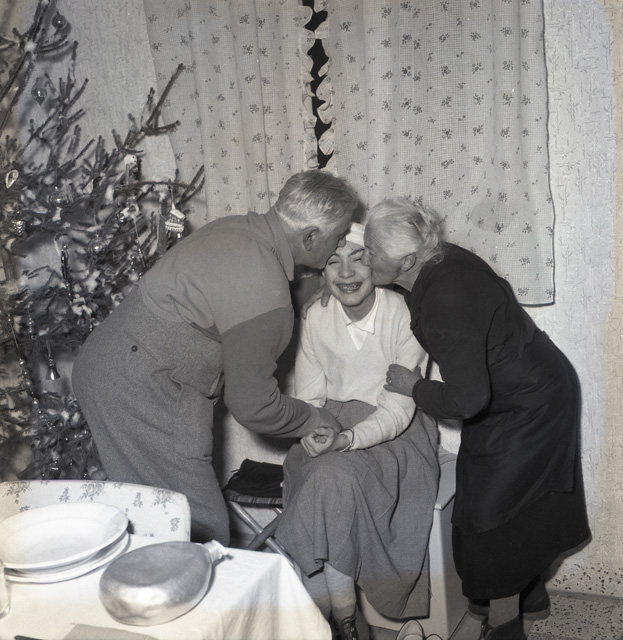 La giovane gradiscana Alessandra Fornasiero rientra da un viaggio a Stoccolma dove è stata operata dal professore Herbert Olivecrona. Con una sottoscrizione il Piccolo finanzia l'intervento che viene descritto nelle pagine del giornale. La documentazione fotografica utilizzata dal giornale è di Giornalfoto. Il servizio di Foto Omnia documenta anche il rientro a Gradisca.