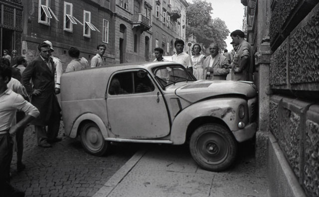 Fourgoncino 500 contro il muro via Rossetti, 15