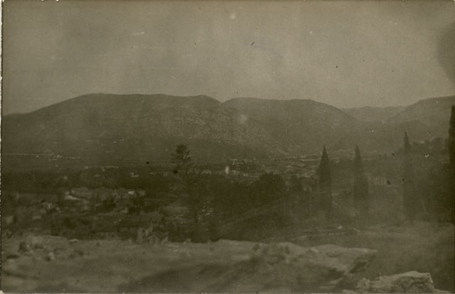 Panorama dal castello di Gorizia verso nord: Sabotino, Monte Santo, Sella di Dol, S. Gabriele, più sotto S. Caterina.