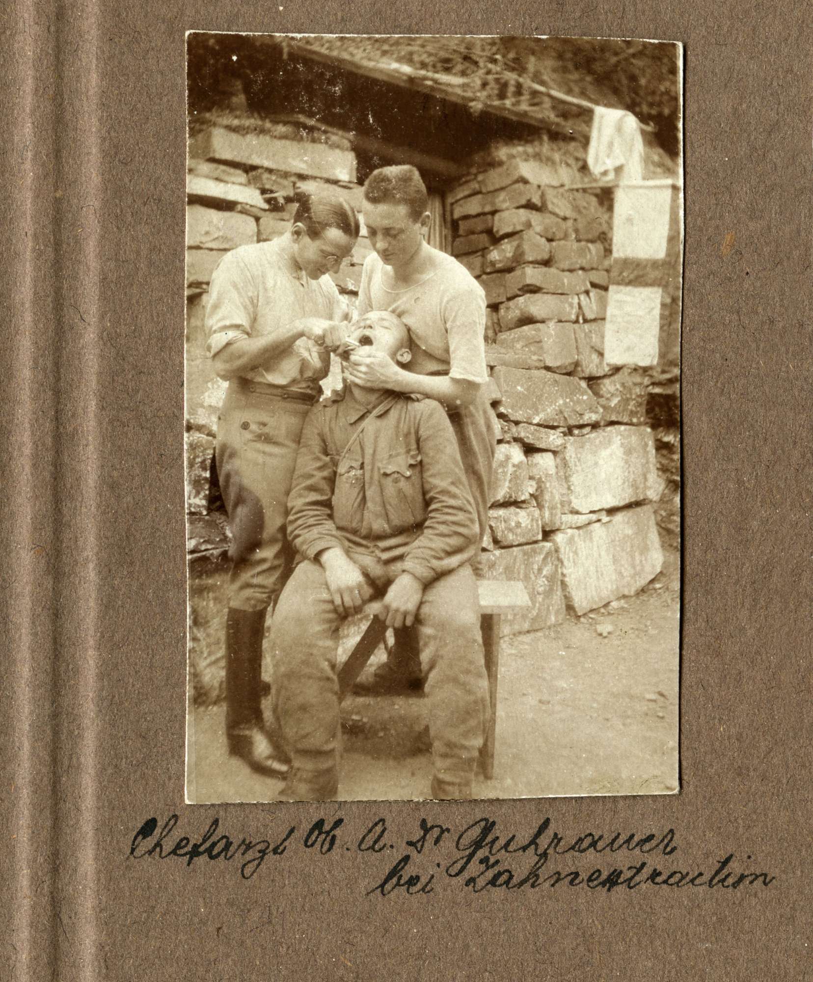Il primario Capomedico dottor Guhrauer estrae un dente mentre Mario Slavich osserva