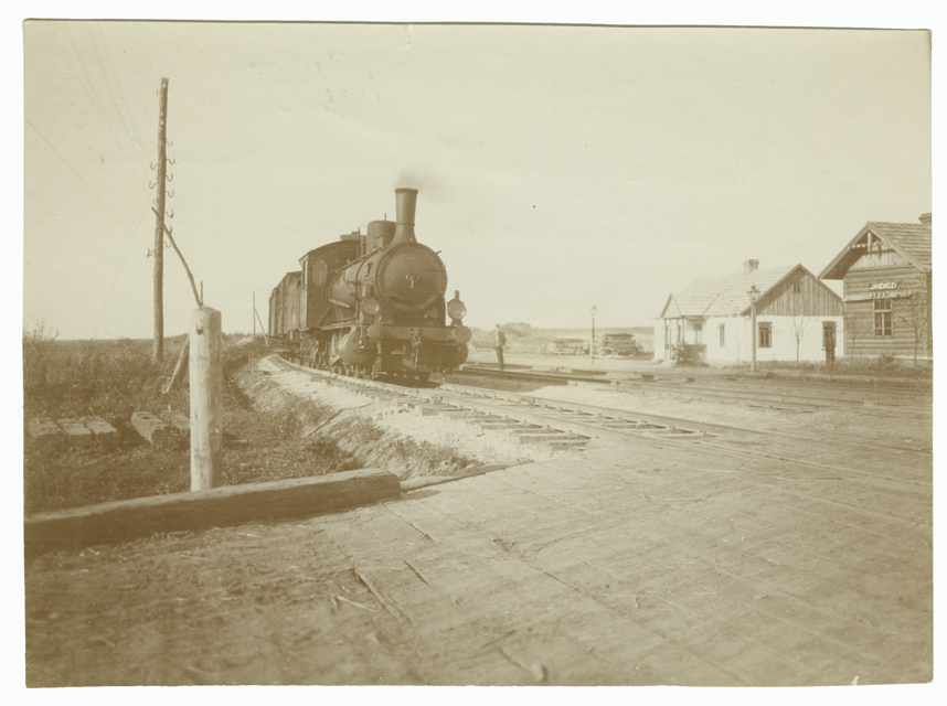 Arriva un treno trasporto con truppe tedesche alla stazione di Janiewicze (Janiewiczy), comune di Hrybovytsia (Grzybowica), distretto di Ivanychi, posta lungo la linea ferroviaria Volodymir Volynski-Sokal