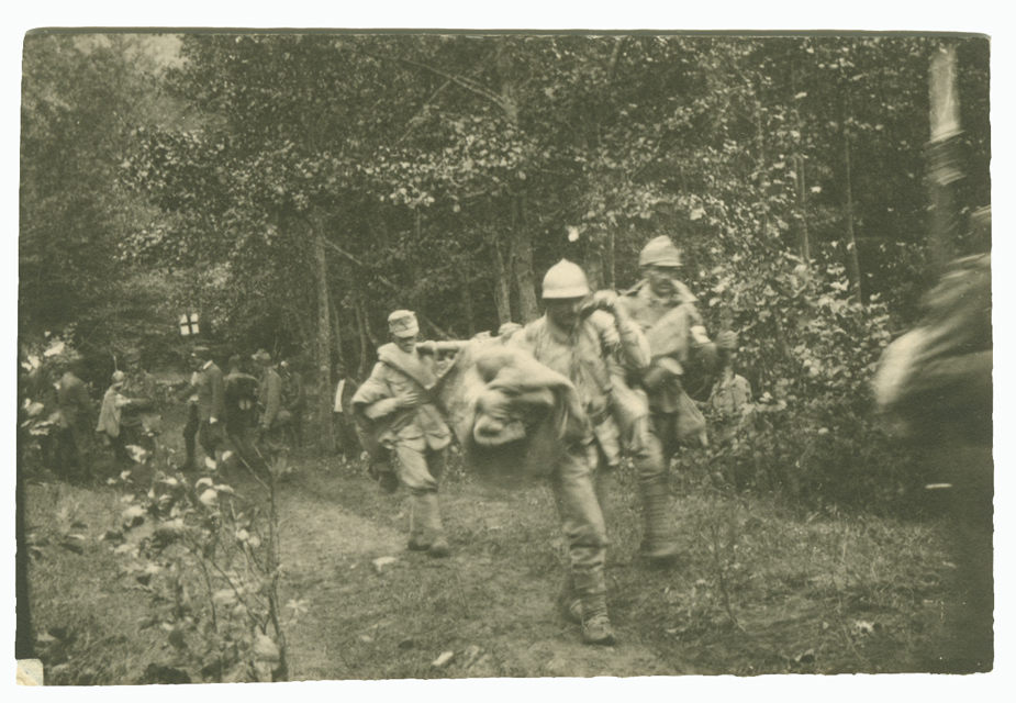 Tra l'8 e il 20 agosto 1917 il Reggimento Ulani n. 12 prende parte alla seconda Battaglia di Oituz. Nella foto i feriti del Reggimento vengono trasportati al primo soccorso da prigionieri romeni. Durante la notte tra l'8 e il 9 agosto il 4. Corpo d'Armata romeno aveva contrattaccato nelle zone tenute dai tedeschi, facendo 200 prigionieri e riguadagnando un po' del terreno perso il giorno prima. Ma nel pomeriggio del 9, le forze austro-tedesche attaccheranno in forze conquistando la cima Pravila e arrivando fino al monte Coșna. La 7. Divisione di infanteria romena dovette ritirarsi su una nuova linea difensiva.