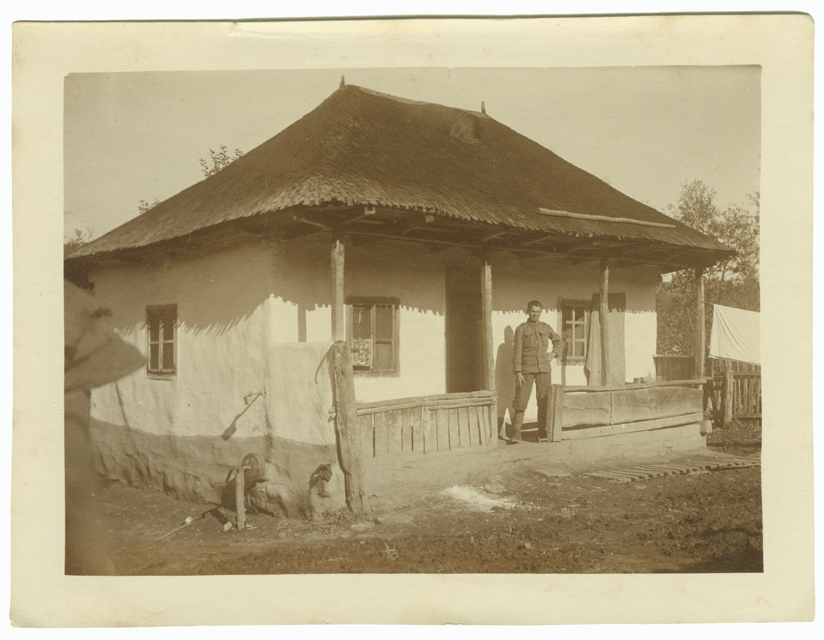 Il bravo attendente del capitano Chiachich, Stefano Jstvanich, davanti al quartier generale di Gaurile. Gaurile è Gura Văii, paese nel comune di Câmpuri, distretto di Vrancea