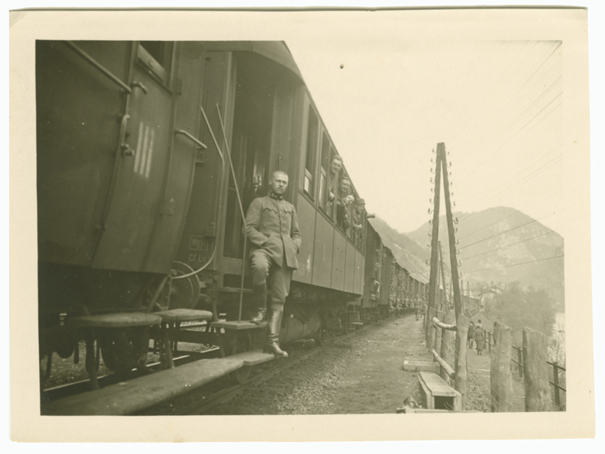 Il treno-trasporto, comandato dal capitano Chiachich, che conduce il 12. Reggimento Ulani dalla Romania al fronte del Piave, nel tratto Pragerhof (oggi Pragersko)-Lubiana. Il 5 marzo 1918 la Romania aveva firmato a Buftea, vicino a Bucarest, un trattato di pace preliminare con gli Imperi Centrali, che verrà ratificato poi il 7 maggio col Trattato di Bucarest