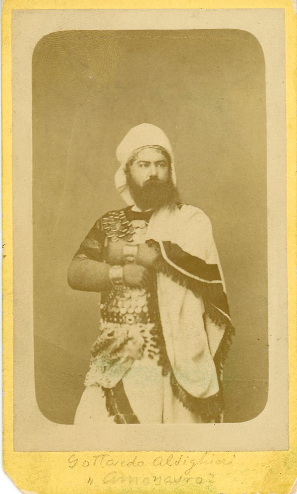 In costume, nel ruolo di "Amonasro" dell'opera Aida, interpretato a Lisbona nel 1878